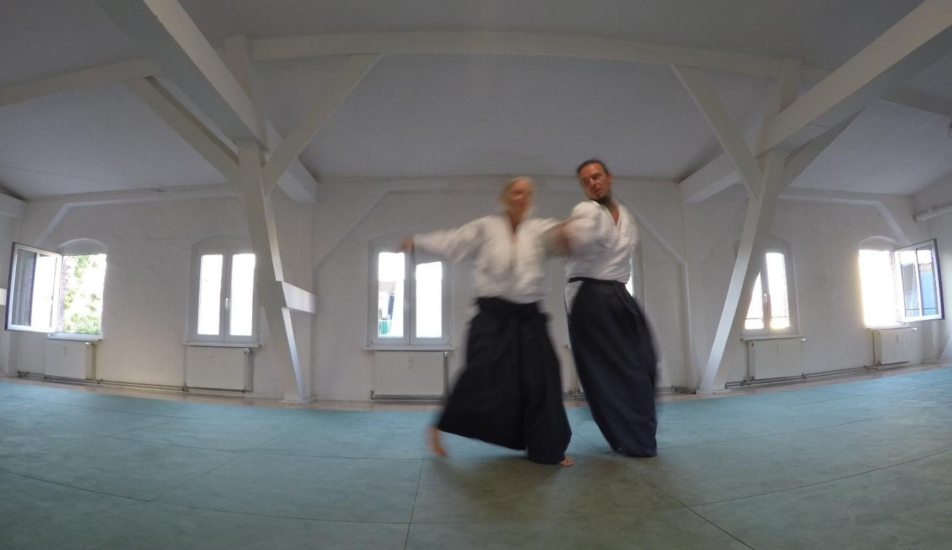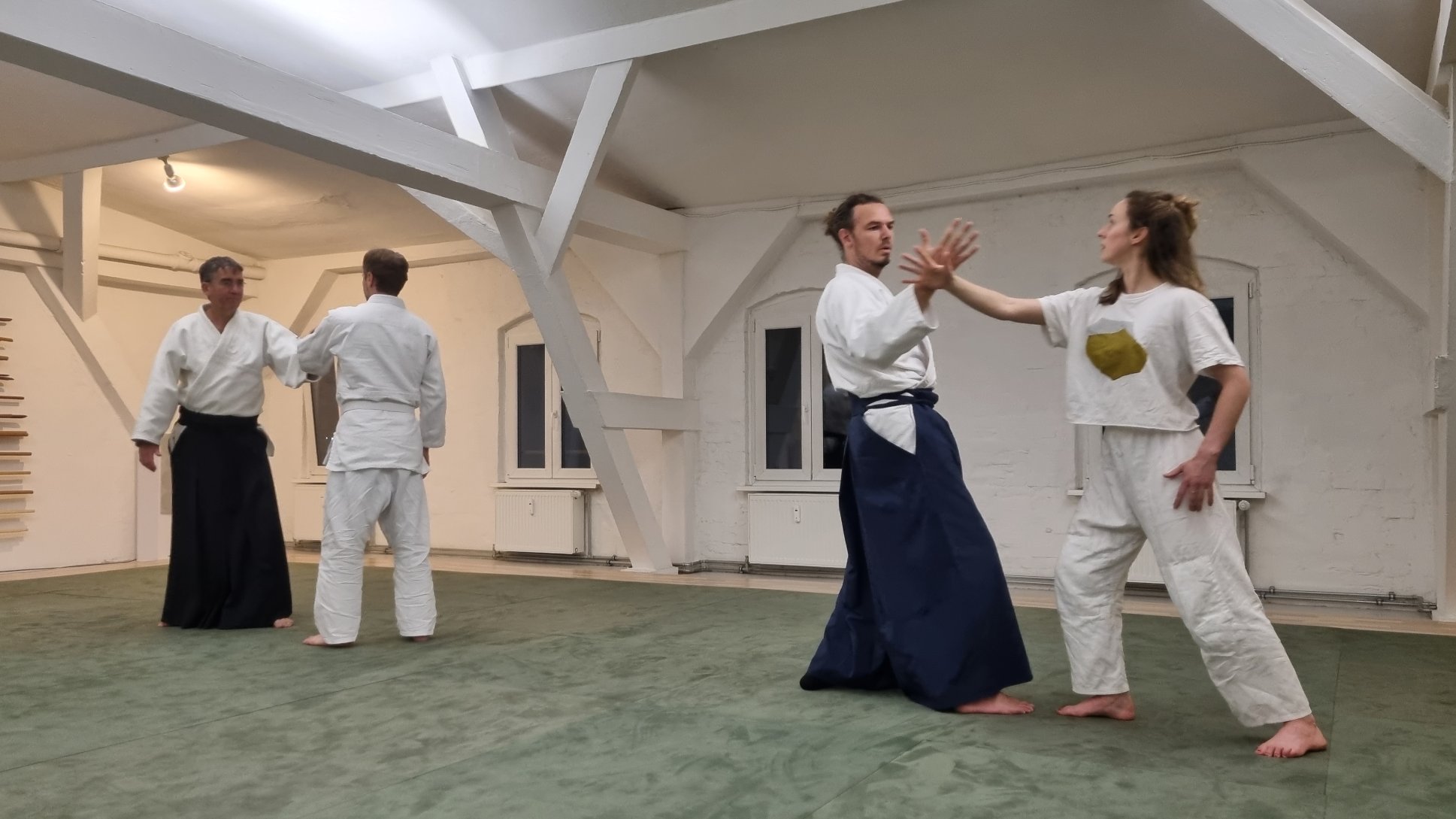 Wir trainieren aktuell einmal die Woche in unserem Dojo in Neukölln. Neben Aikido fließen auch immer wieder Elemente des Yoga und der Meditation in das Training ein.